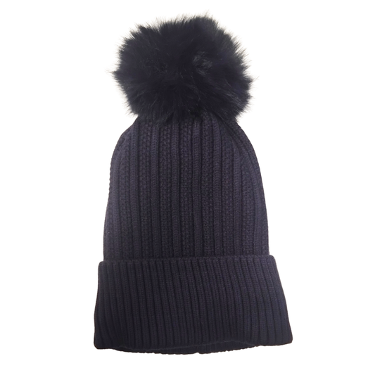 Straight Cable Knit PomPom Beanie Hat