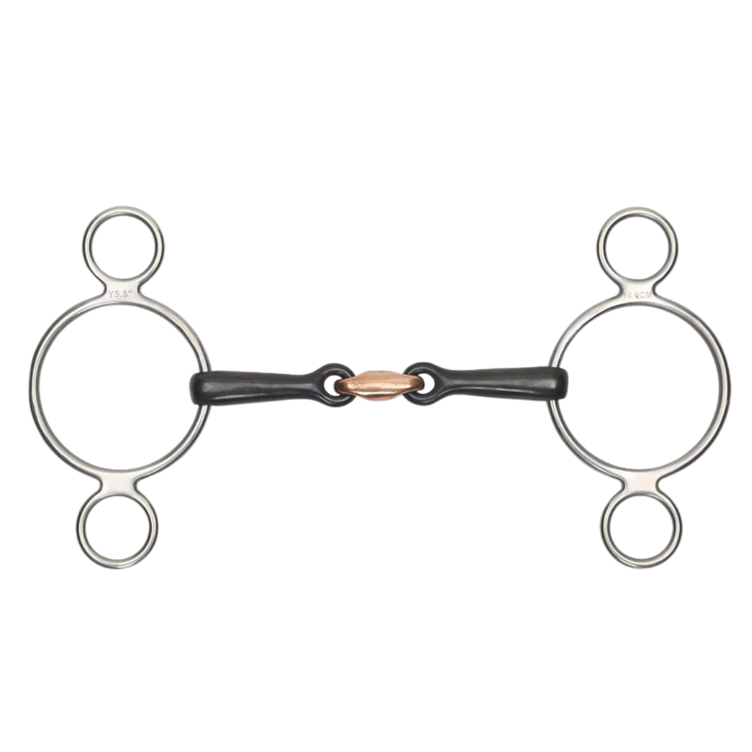 Moving the rein between the main ring and bottom ring allows leverage. Sweet iron and copper encourages the horse to be softer in the mouth. The 5" and smaller sizes of this bit have smaller rings to ensure the two ring gag bit remains in proportion. Mouthpiece thickness: 16mm. Cheek height: 115mm (4.5", 5"), 145mm (5.5", 6"). Sweet iron mouthpieces are designed to oxidize to produce a sweet taste which helps with mouthing. The addition of copper to the mouth ensures the horse will not take up too much of a contact, ideal for horses that can take a hold. Stainless steel is used for the cheeks due to it being durable, easy to clean and resistance to rust.