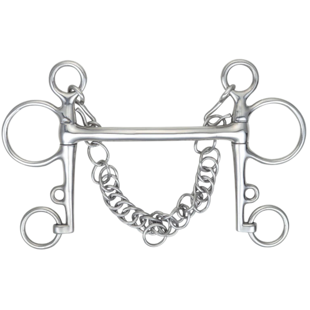 This is a very mild bit as the pressure is distributed evenly through the mouth. Ideal for horses with small or soft mouths. Can be used with double reins or pelham roundings. Mouthpiece thickness: 14mm. Cheek height: 115mm (4.5"), 130mm (5", 5.5"), 140mm (6"). Stainless steel is the most common material for bits. Durable, easy to clean, tasteless and does not rust.