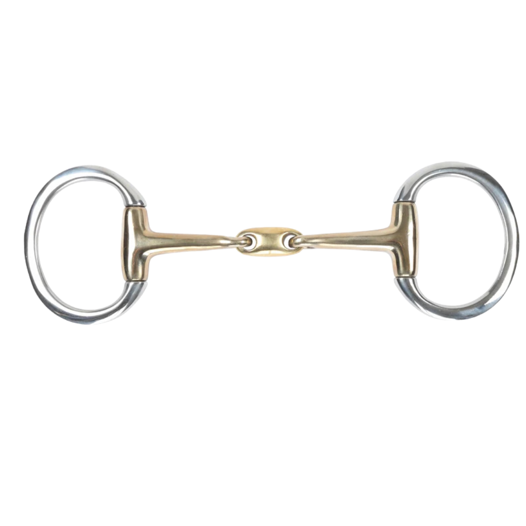 The fixed rings prevent pinching, whilst the brass alloy double joint distributes pressure over both the tongue and bars of the mouth to encourage mouthing and contact. Mouthpiece thickness: 13mm. Cheek height: 55mm (4.5", 5"), 75mm (5.5", 6"). Brass alloy mouth: Copper is alloyed with a harder metal to produce warm, durable mouthpieces which aid salivation. Stainless steel is used for the cheeks due to it being durable, easy to clean and resistance to rust.