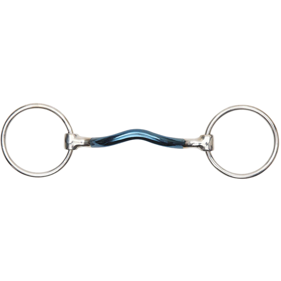 The mullen mouth is very stable in the horse's mouth. It has a medium port creating space for the tongue and relieving pressure. Mouthpiece thickness: 12mm. Cheek height: 65mm. Blue sweet iron mouthpieces oxidise easily to create warmth with a sweet taste which helps with bit acceptance and encourages salivation. Please note the blue colour will fade with use. Stainless steel is used for the cheeks due to it being durable, easy to clean and resistance to rust