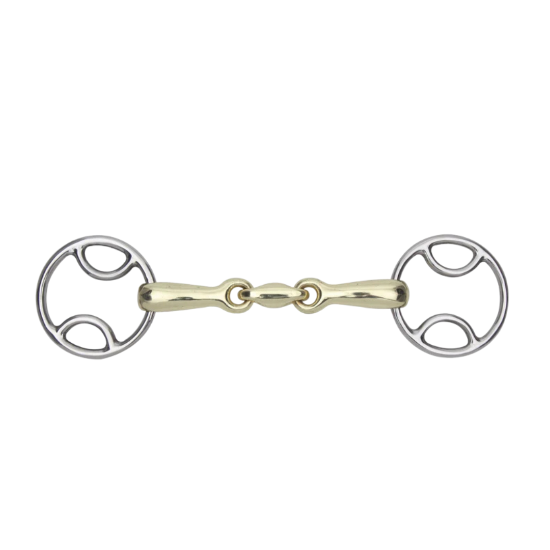 The bevel bit allows mild leverage, with a brass alloy lozenge to assist with salivation. The ring is larger on the 5" and 5.5" so the bit remains in proportion with the larger horse's head. Mouthpiece thickness: 16mm. Cheek height: 55mm (4.5", 5"), 70mm (5.5"). Brass alloy mouth: Copper is alloyed with a harder metal to produce warm, durable mouthpieces which aid salivation. Stainless steel is used for the cheeks due to it being durable, easy to clean and resistance to rust.