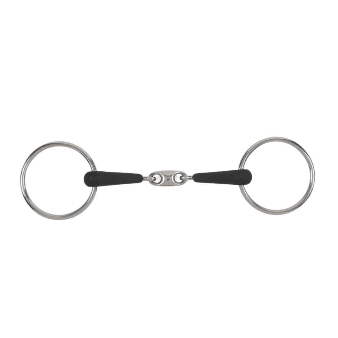 This loose ring EquiKind+ snaffle offers more movement in the horse's mouth and helps to discourage leaning on the bit. Mouthpiece thickness: 15mm. Cheek height: 50mm (4.5"), 65mm (5", 5.5"). The EquiKind+ coating is thinner than a rubber mouthpiece making them more comfortable for horses that don't have room for a thick mouthpiece and ideal for sensitive mouths or horses that don't like metal in their mouths. Stainless steel is used due to it being durable, easy to clean and resistance to rust.