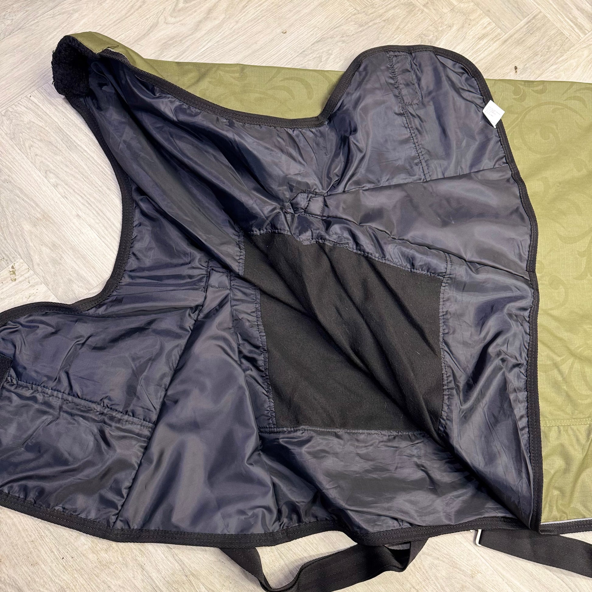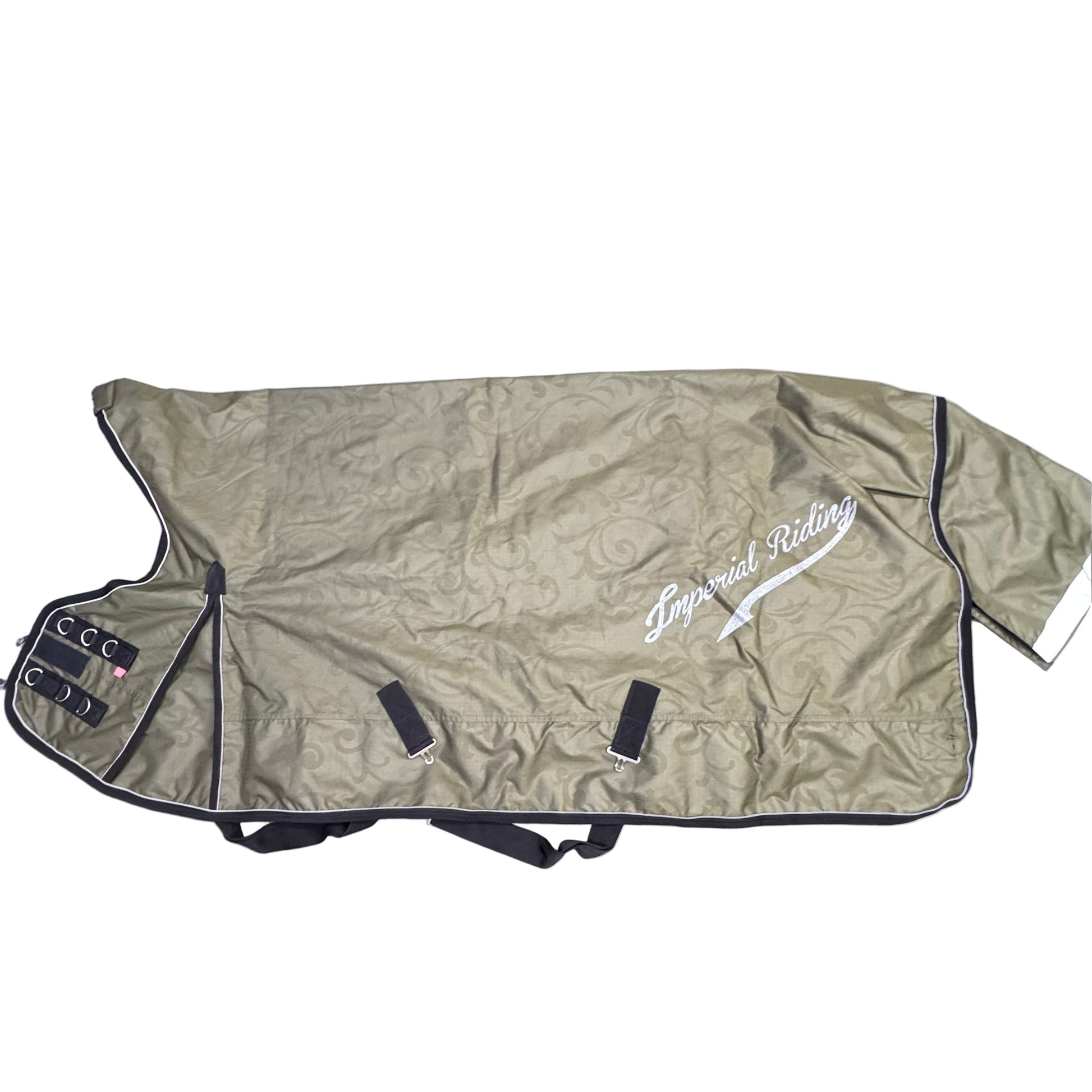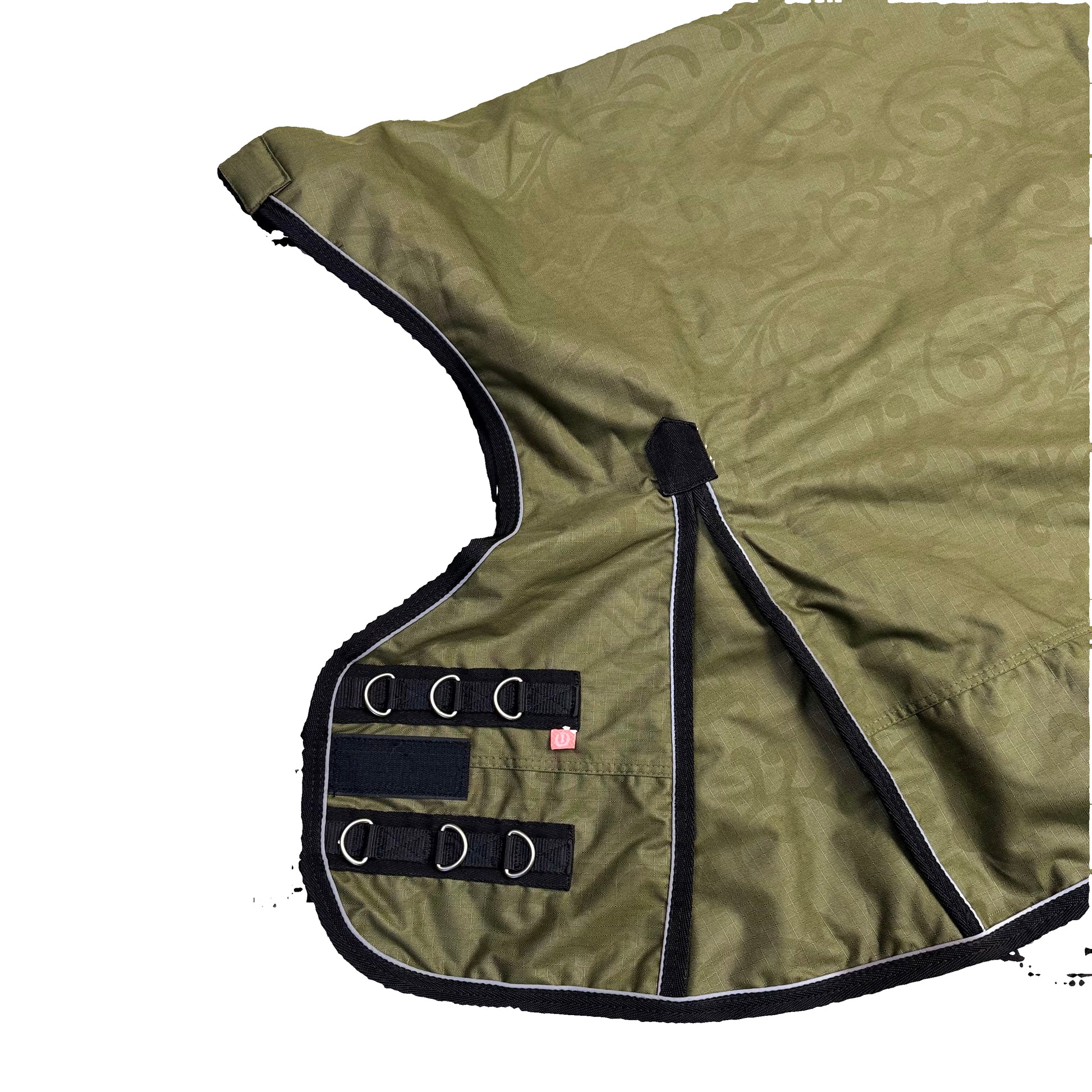 Item :Half neck Turnout rug with fleece lining . Swirly design and silver glitter detail writing.