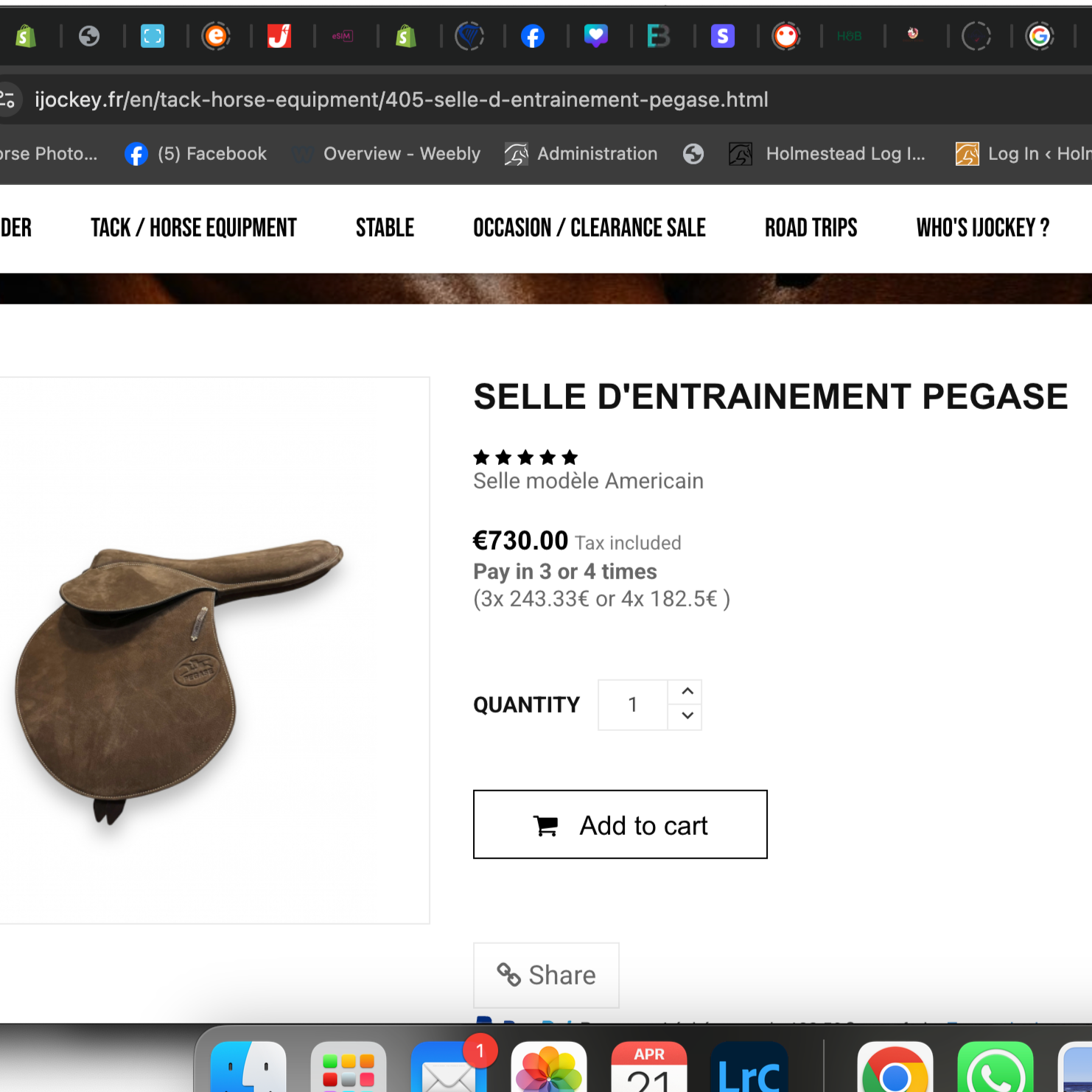 Item : pegase race exercise saddle ex demo in great condition . Market value €730