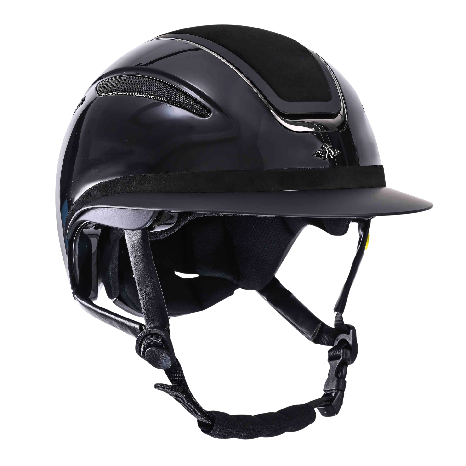 The HV Polo helmet Magnifica stands out with its elegant design, featuring a high-quality suede top, sparkling rhinestones, and a suede trim on select colors. Its fashionable polo visor offers effective sun protection. For enhanced safety, the helmet incorporates an integrated Mips system and complies with key safety standards, including UKCA, EN1384:2023, PAS015:2011, and holds certificate KM733676.