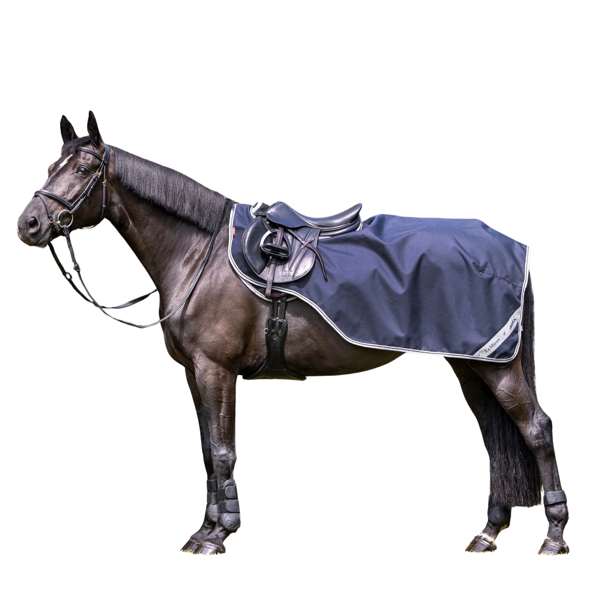 The LeMieux Arika Exercise Sheet delivers practical protection for horses during warm-up and light work sessions. Its innovative design fits seamlessly under saddle and pad, providing coverage without restricting rider movement. Reflective hindquarter panels enhance visibility during low-light conditions, while secure fastening at the withers and rear fillet strap prevent shifting during exercise. The combination of waterproof, breathable outer fabric and microfleece lining manages moisture effectively—dispersing sweat while shielding against rain and maintaining optimal body temperature. Engineered for clipped and fit horses, this sheet keeps your horse dry and protected without compromising comfort or performance.