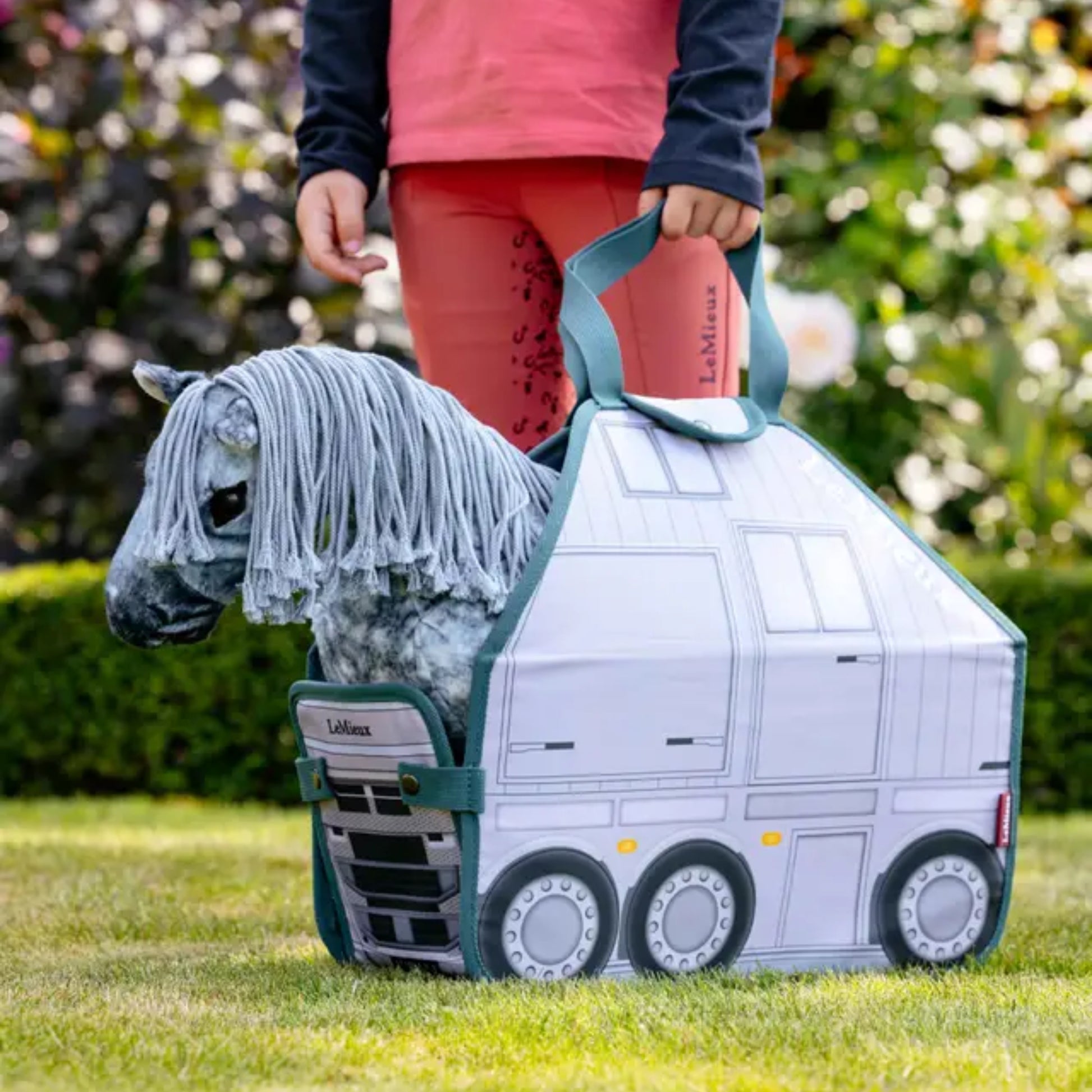 Transport your LeMieux Toy Pony easily in its dedicated travel lorry carry bag. Inside, a name badge allows personalisation with your Toy Pony’s name. The bag features a lifelike fold-down ramp and includes mesh pockets to organise Toy Pony accessories and treats—ideal for shows, events, or holidays.