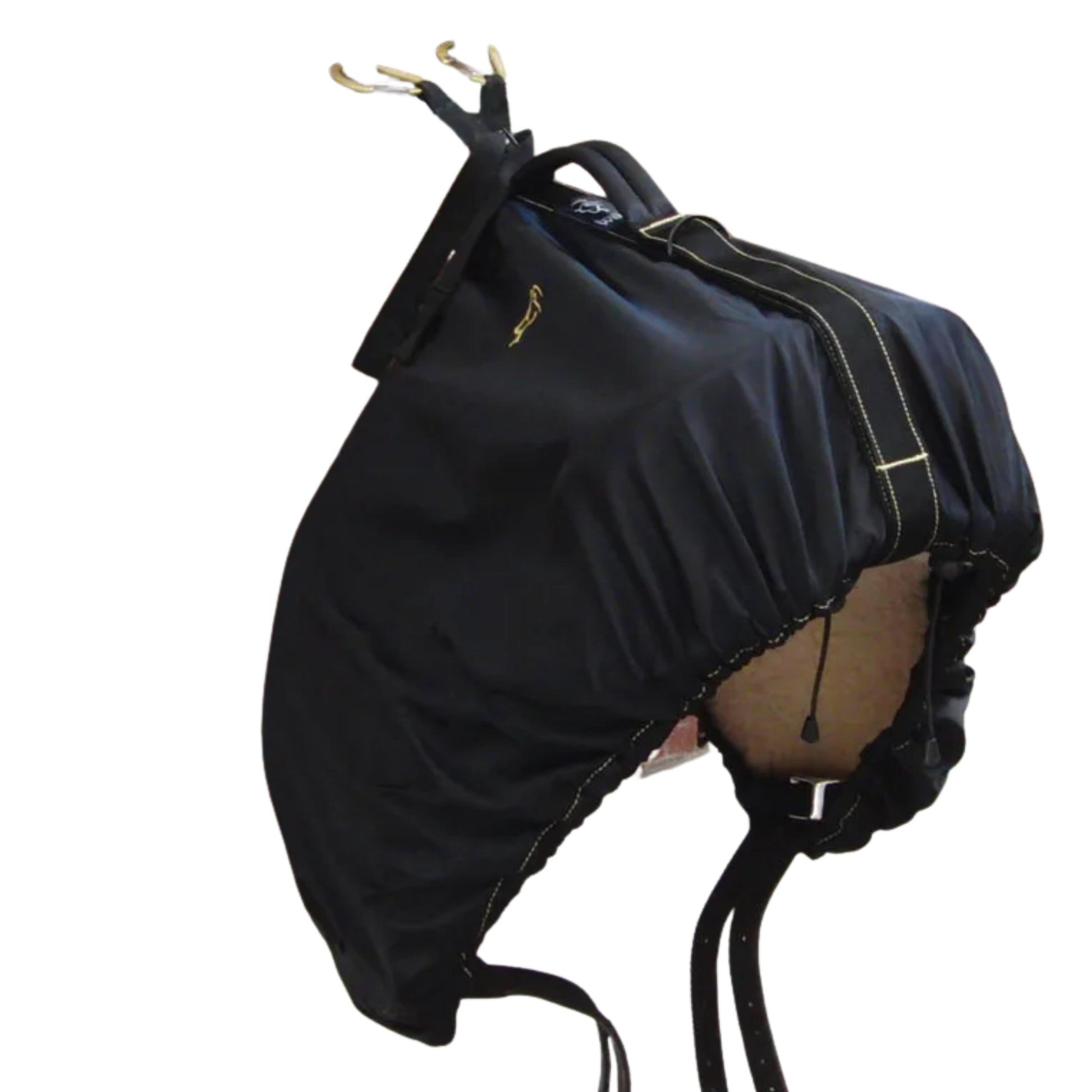 This innovative three-in-one system transforms saddle transport and storage with a single, versatile solution. Engineered to protect your saddle whilst offering flexible hanging options—whether securing to a horsebox, paddock fixture, or vehicle—it eliminates the need to rest your saddle on the ground. The robust waterproof exterior shields against the elements, whilst the cushioned interior safeguards your equipment from damage. Integrated carabiner attachments provide secure fastening, and the dual carrying options—reinforced handle and adjustable shoulder strap—ensure convenient portability across any setting.