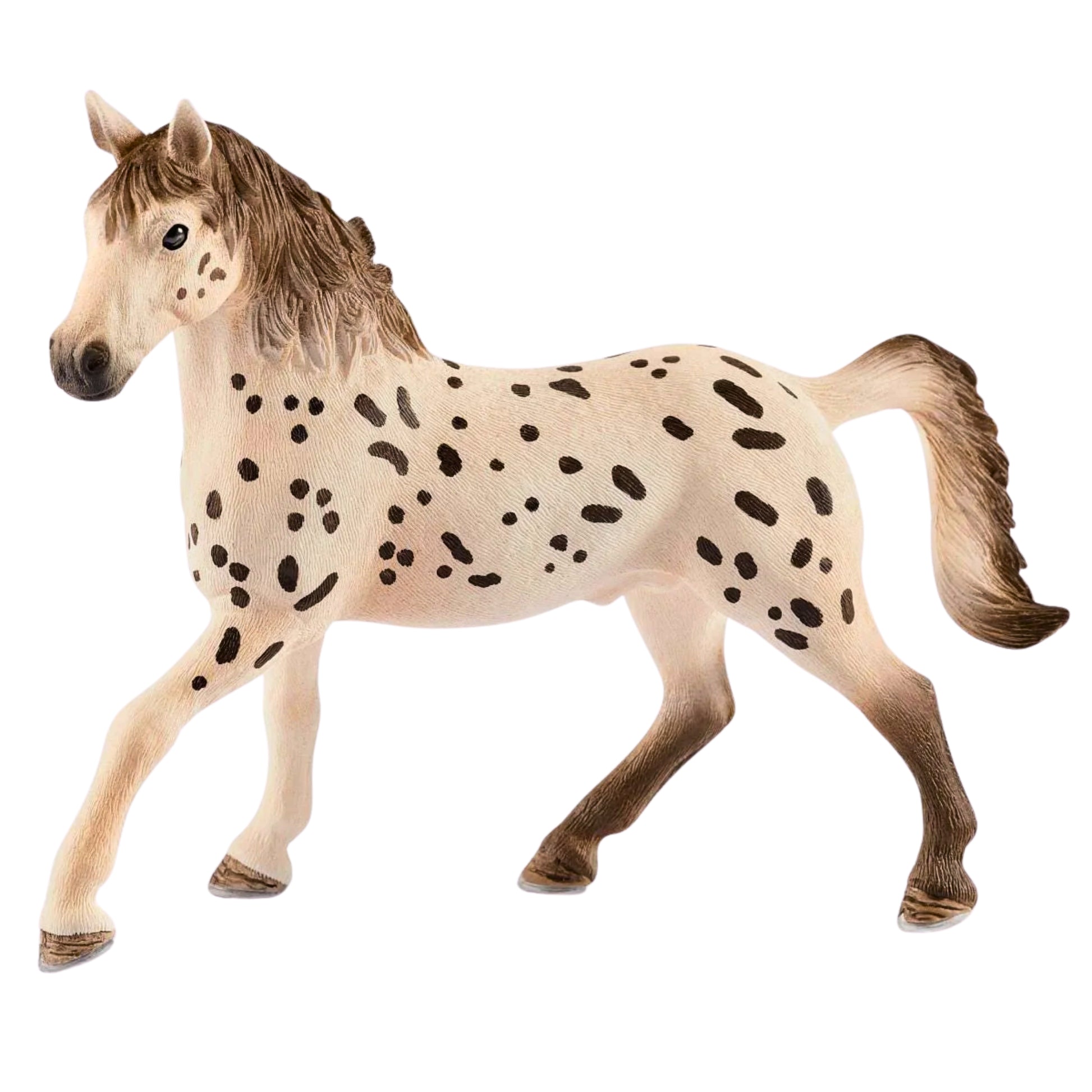 The Knabstrupper stallion closely resembles the Appaloosa stallion, as both exhibit distinctive coat markings.