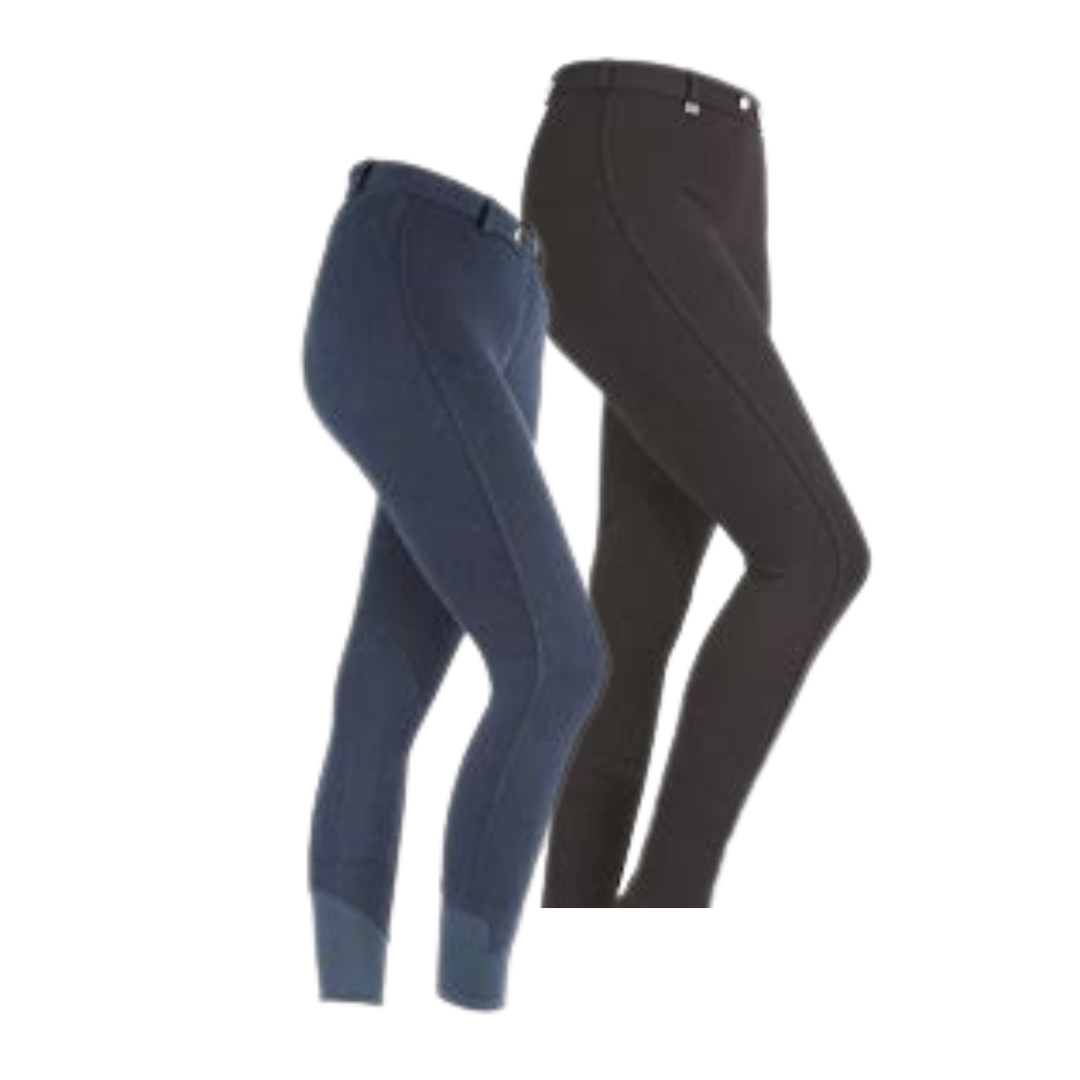 Great all round riding legwear, 4-way stretch knitted Creora® fabric gives these jodhpurs superior comfort and fit. Self-fabric contoured seat and knee patches, flat front, belt loops and inner hip pocket.