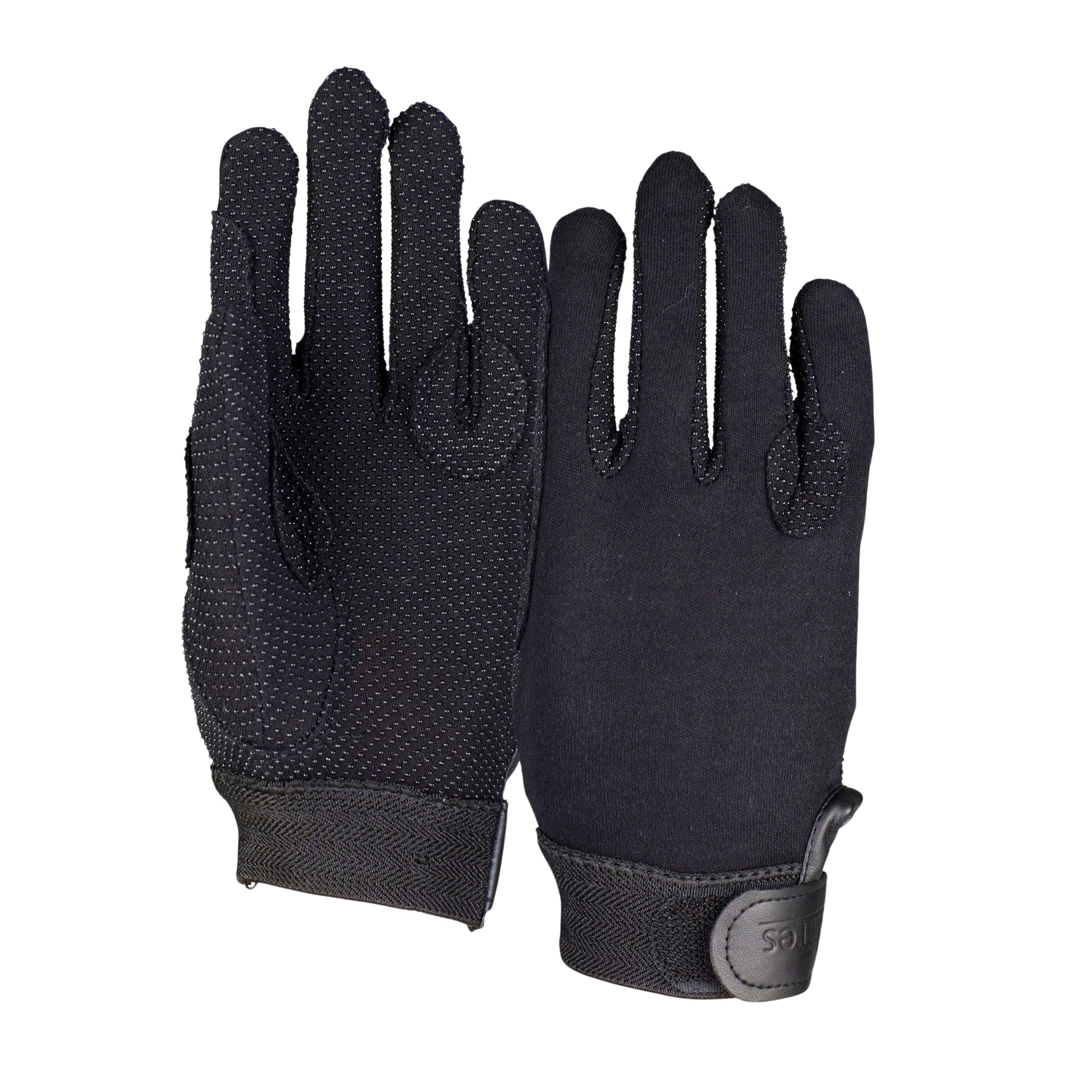 Aubrion Newbury riding gloves feature breathable CottonKnit fabric combined with flexible comfort. The rubber pimple grips on the palm and fingers enhance control when handling reins. Designed with a stretch wrist and gentle, non-scratch touch fastenings, these gloves deliver a secure and tidy fit.