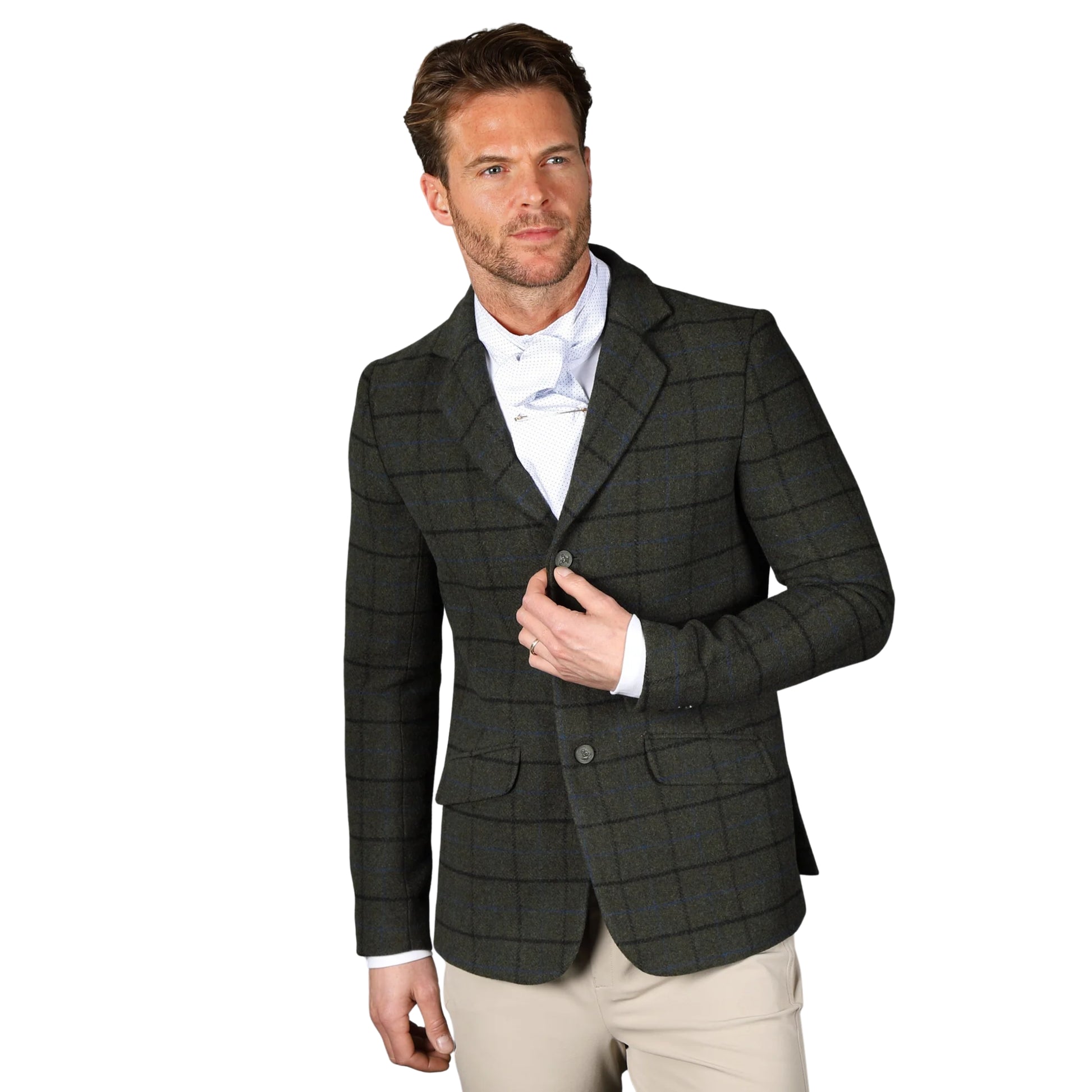 The Aubrion Saratoga jacket is a timeless piece designed for comfort and freedom of movement while riding. Crafted from luxurious wool-rich tweed, it offers a tailored, flattering silhouette and is fully lined with satin for added refinement. Ideal for various equestrian activities including showing, competition, and countryside riding. Key features include rear vents, a three-button front closure, buttoned cuffs, two slanted flap pockets, and a smooth satin lining.
