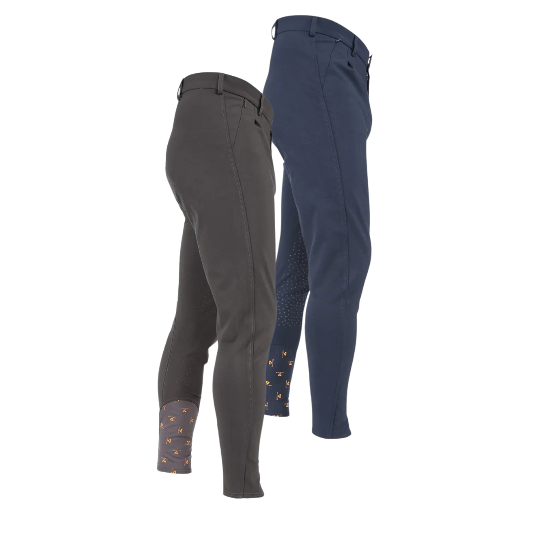 Smart and technical, Walton boys performance breeches are both flexible and supportive to offer the rider professional performance. Lightweight and quick drying with matte finish silicone knee grips for stability. Add a belt for true show presence. Style detail: pleat front, contour seat, discrete zip hip pockets, belt loops, sleek dry ankle cuffs, Aubrion prints.