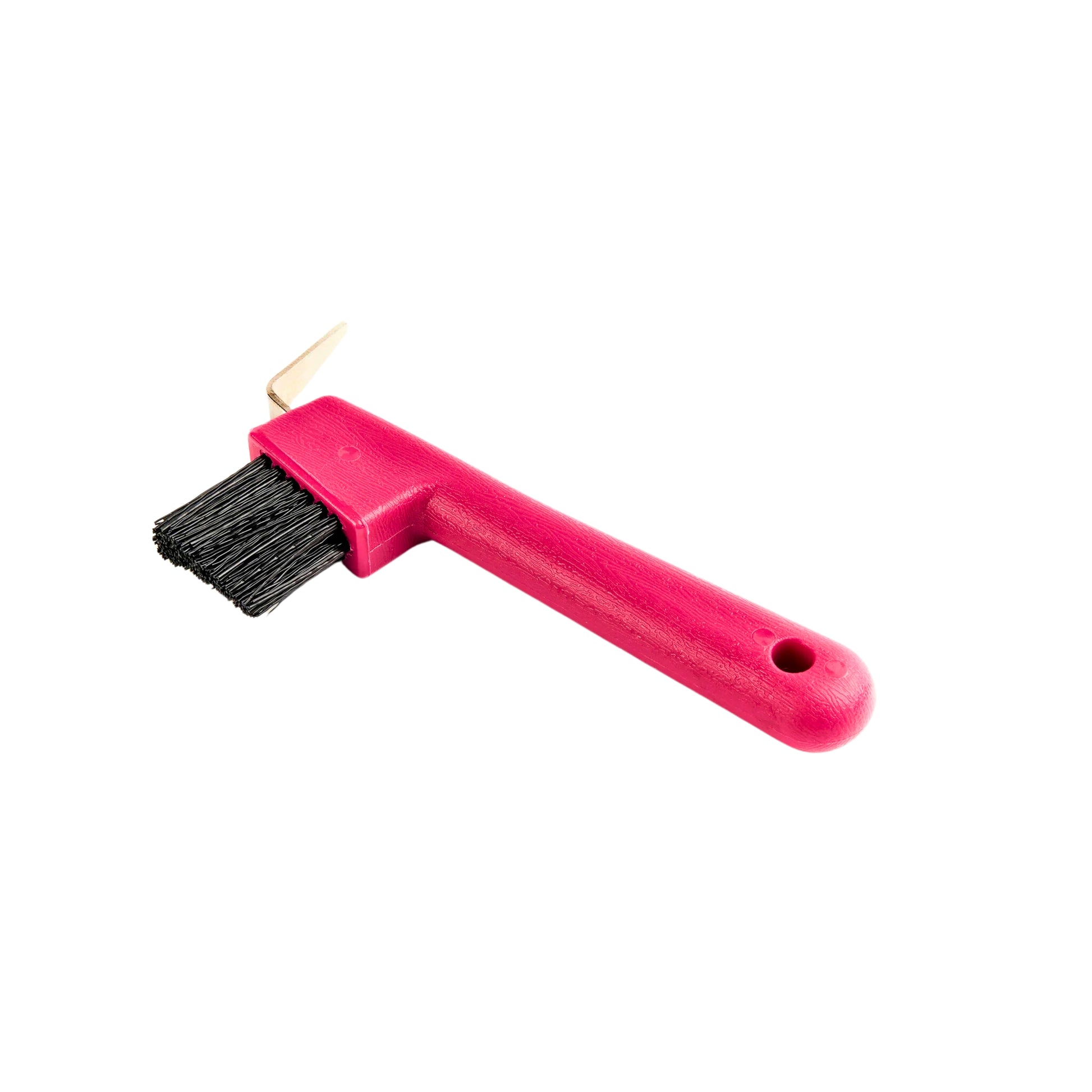The Shires Ezi-Groom Hoof Pick With Brush boasts a sturdy plastic body, durable metal pick, and a tough nylon brush for effectively removing loose mud and dust.