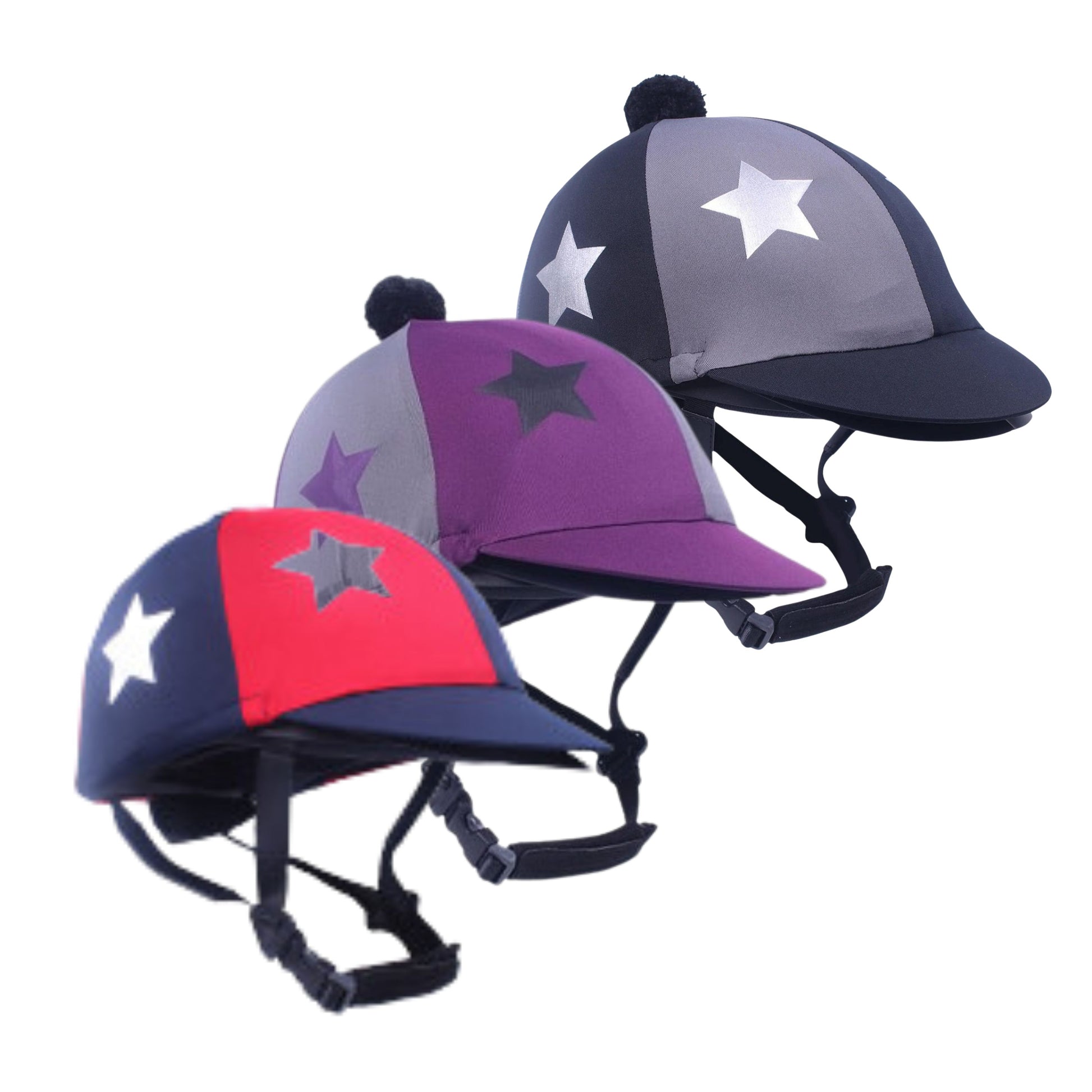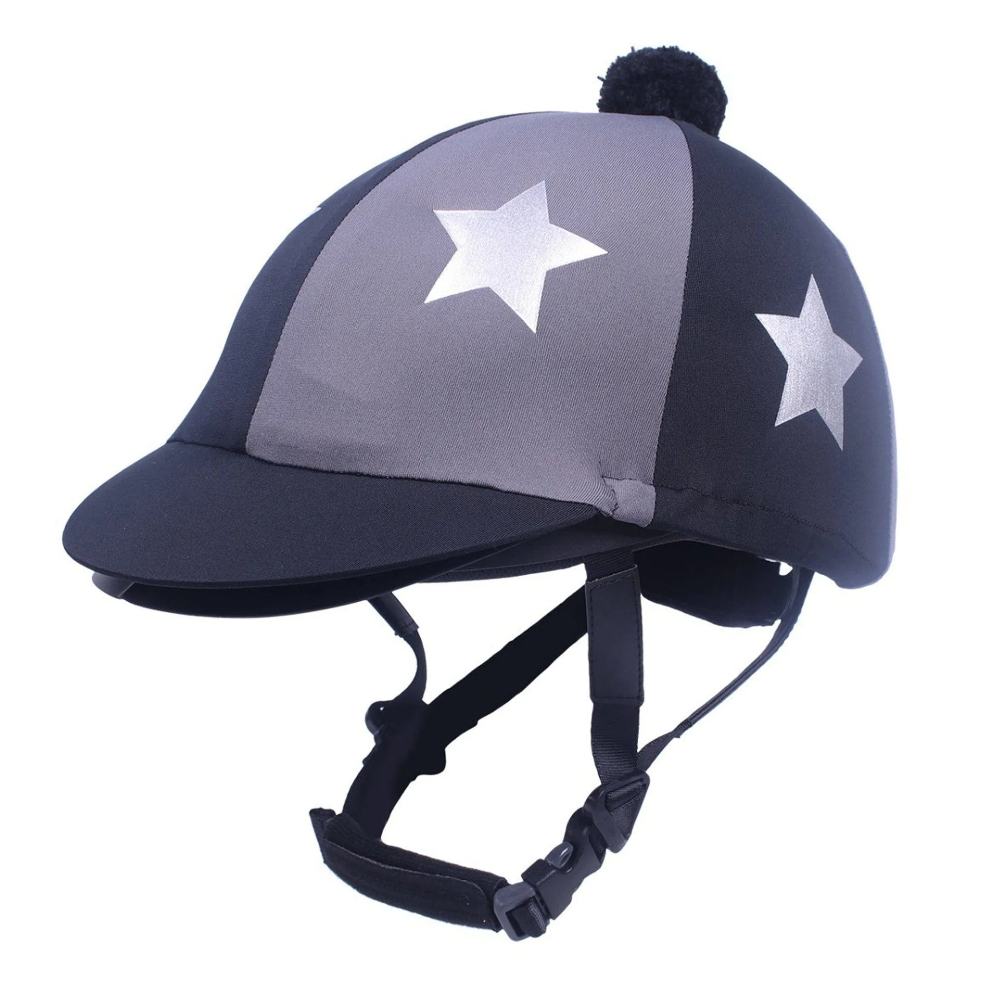 Helmet cover with visor and star print, which can be used for bombs with or without visor. Eventing bombs do not have a visor, as this can be dangerous in the event of a fall. The visor of the helmet cover does not interfere with a fall and is therefore safe. Matching the products in the Q-cross collection, this helmet cover is the finishing touch to your outfit!