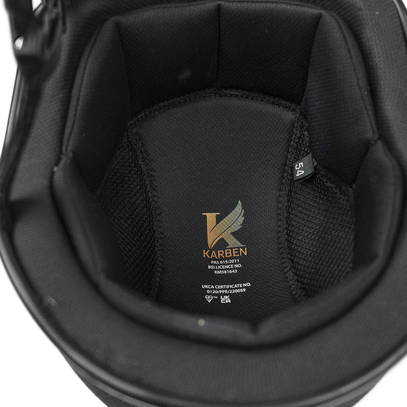 The Karben skull cap balances safety with affordability. Lightweight with a deep fit, the hat features 16 ventilation holes and mesh sections in the padded lining for enhanced climate control. The four point harness is made from hardwearing, soft web and is adjustable around the back of the head and under the chin. A soft cover adds comfort at the chin strap. Certified to PAS015:2011 and with the reassurance of the BSI Kitemark for rider confidence.