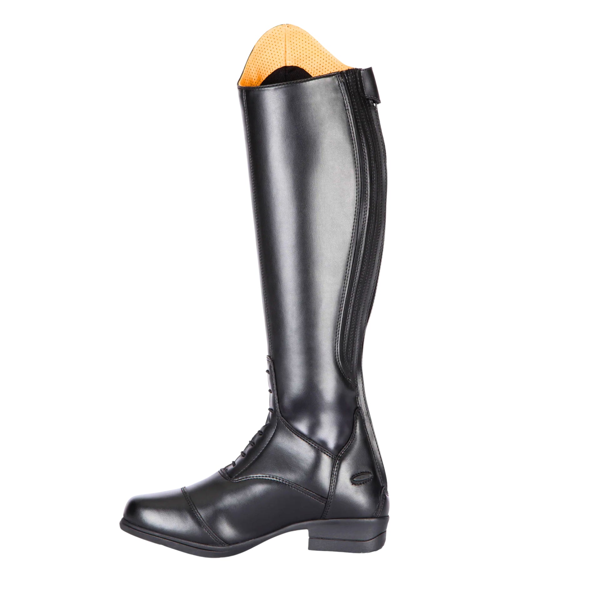 Effortless style is offered by these long riding boots, elegantly crafted using synthetic leather for an easy-care finish. Moretta Luisa boots achieve a close leg fit by pairing hard wearing inner calves with softer stretch outer panels that hug the leg. Supportive insoles and shock absorbing soles ensure feet stay energised in the stirrup. Key features: Quick clean faux leather. WickAway stay dry lining. Soft piqued leather inner trim. Stretch mock lace detail. Dressage cut top. Full length zip. Upper leather zip security tab. Non-slip spur rest. ActiveFlex insole with Impact Support System. Moretta shock absorbing rubber outsole. Steel shanks.