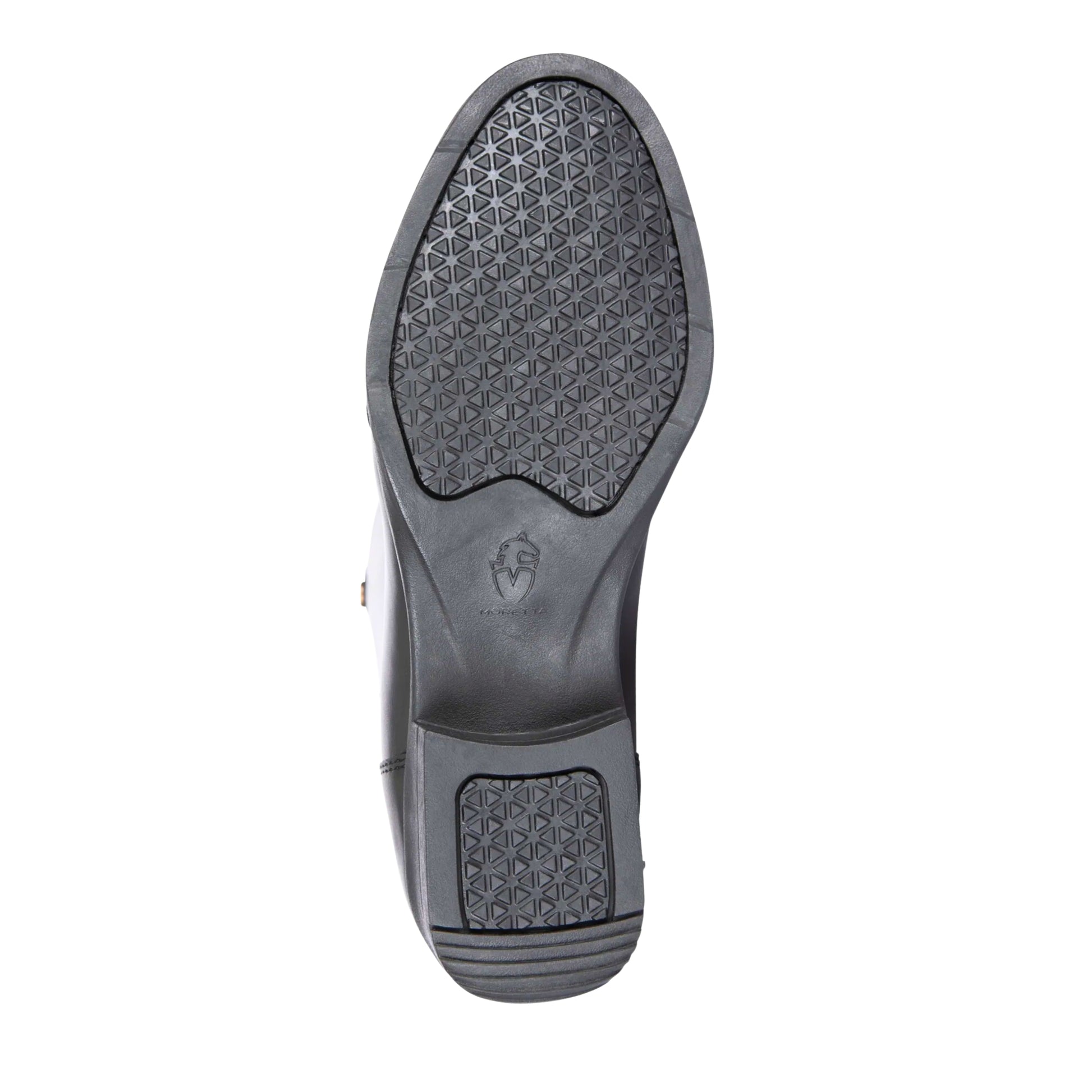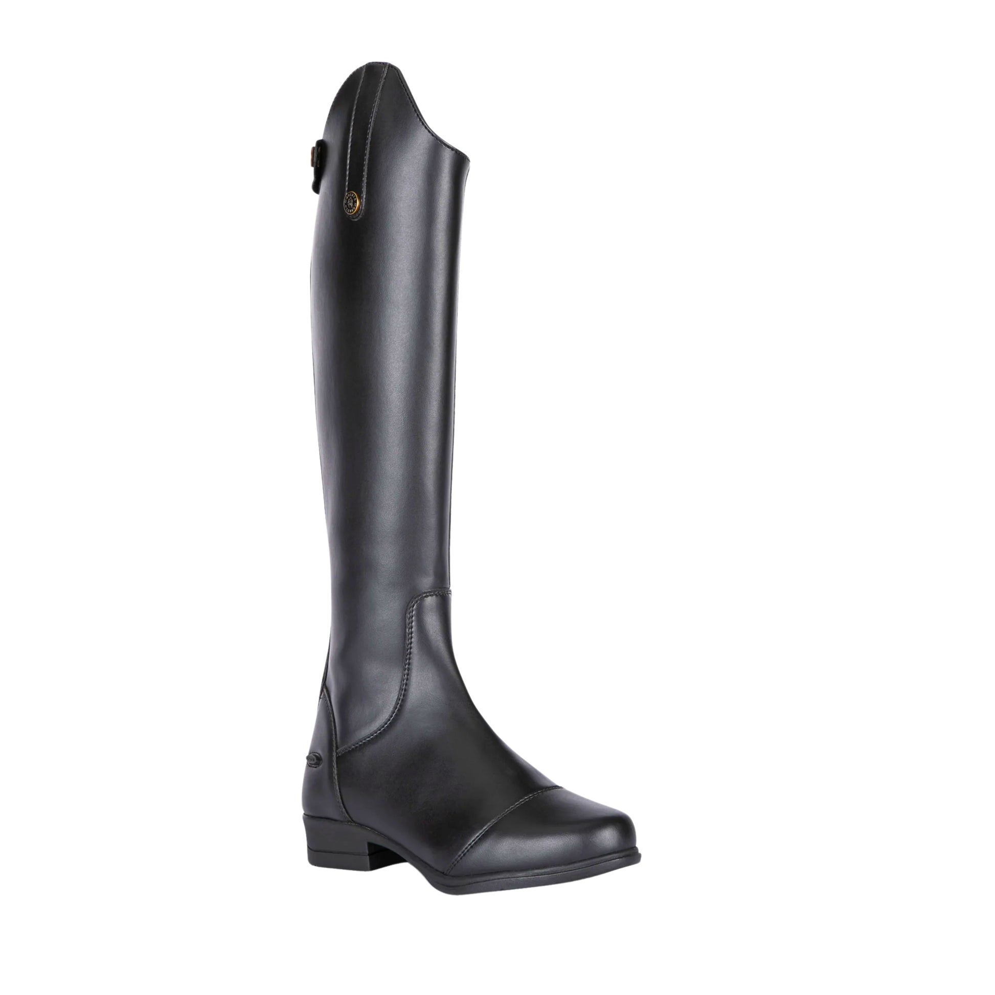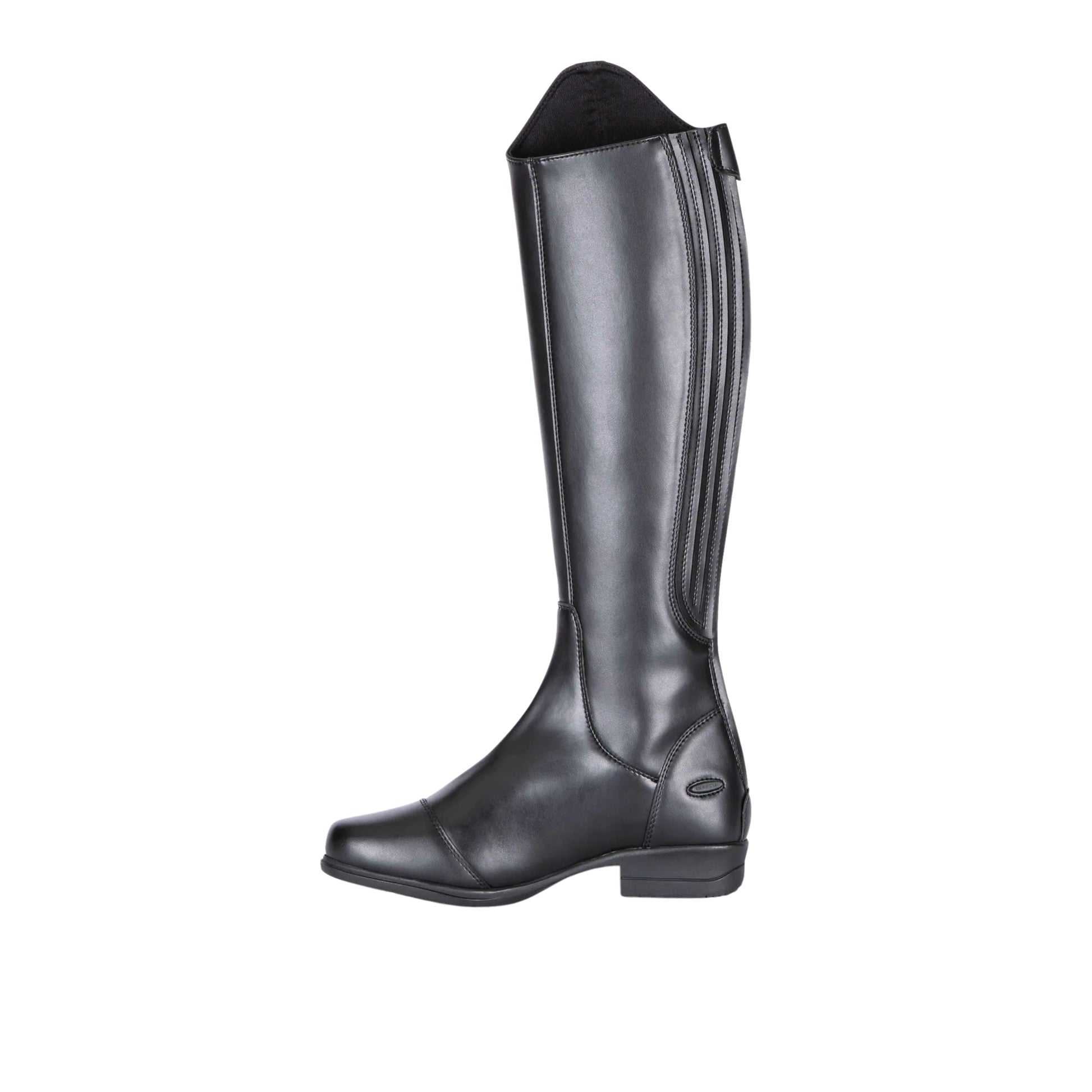 Crafted from synthetic leather with the Moretta elegant boot leg construction, the Marcia riding boots feature a durable and easy-care finish. Soft, stretch outer panels provide a close fit and are complemented by a quick clean faux leather. Key features include a WickAway stay dry lining, Dressage cut top, YKK zip, and upper leather zip security tab. Non-slip spur rest, ActiveFlex insole with Impact Support System, and Moretta shock absorbing rubber outsole provide added comfort and stability. Steel shanks add extra support for all your riding needs.