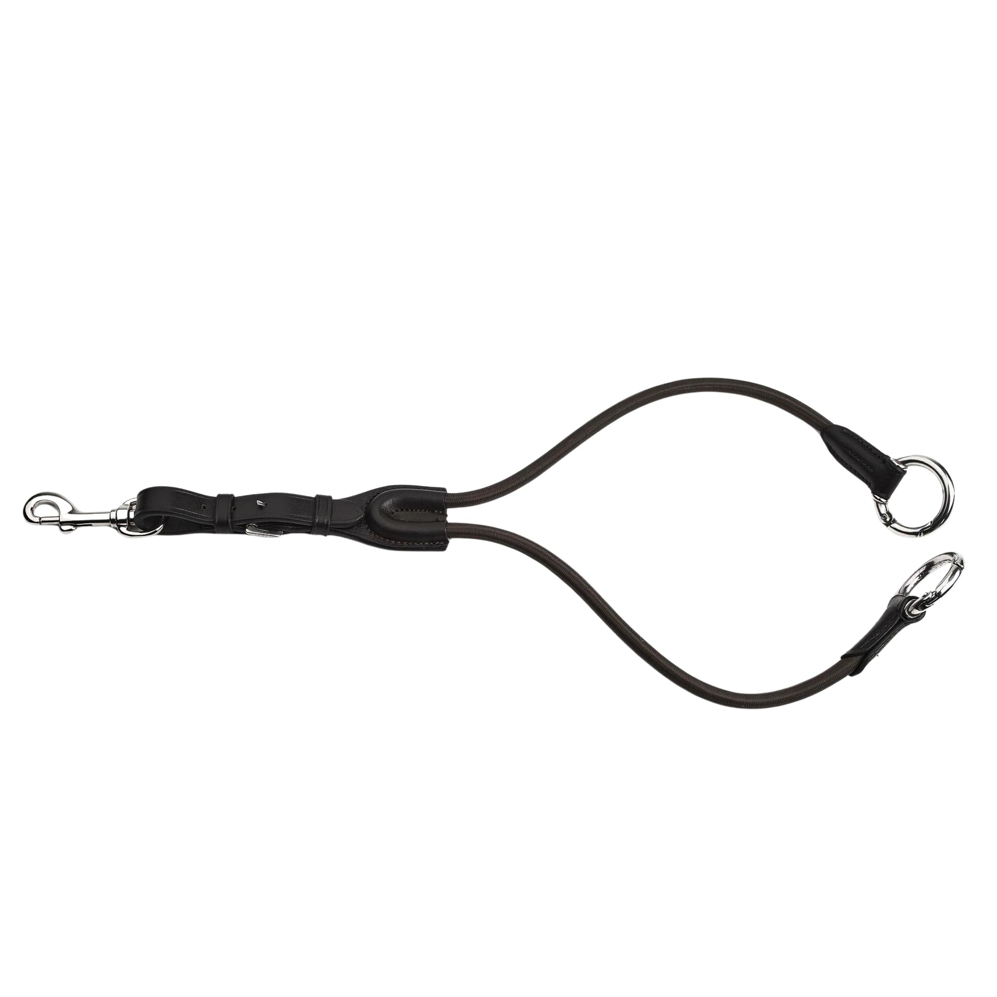 The Velociti GARA elasticated running martingale attachment provides enhanced freedom of movement with its bungee forks that stretch under pressure. Its elastic straps help reduce the impact of the running martingale, making it ideal for young horses and those with sensitive mouths. Designed for easy fitting alongside the bridle, the rein rings clip on effortlessly, while an adjustable buckle and swivel trigger clip offer versatile attachment options. Crafted from eco-friendly vegetable-tanned leather, hand-stitched with matching thread, and equipped with stainless steel buckles, the Velociti GARA combines durability with a timeless, understated design.