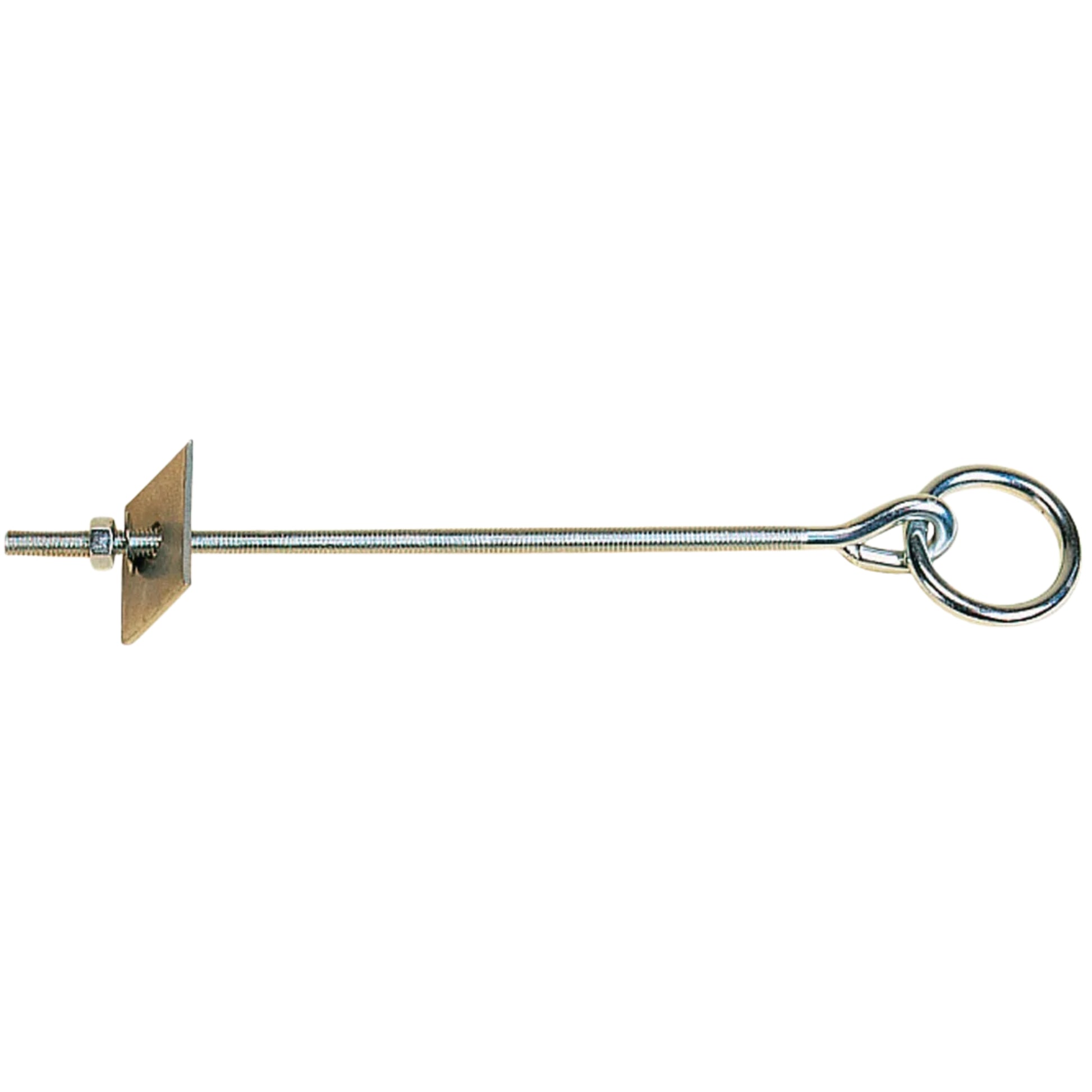 Featuring an 11cm threaded shank with integrated washer and securing nut, this tie ring delivers reliable fastening for stable applications. The bright zinc plating provides corrosion resistance and durability in demanding equestrian environments. Lightweight at 0.17kg, it's engineered for straightforward installation and long-term performance.
