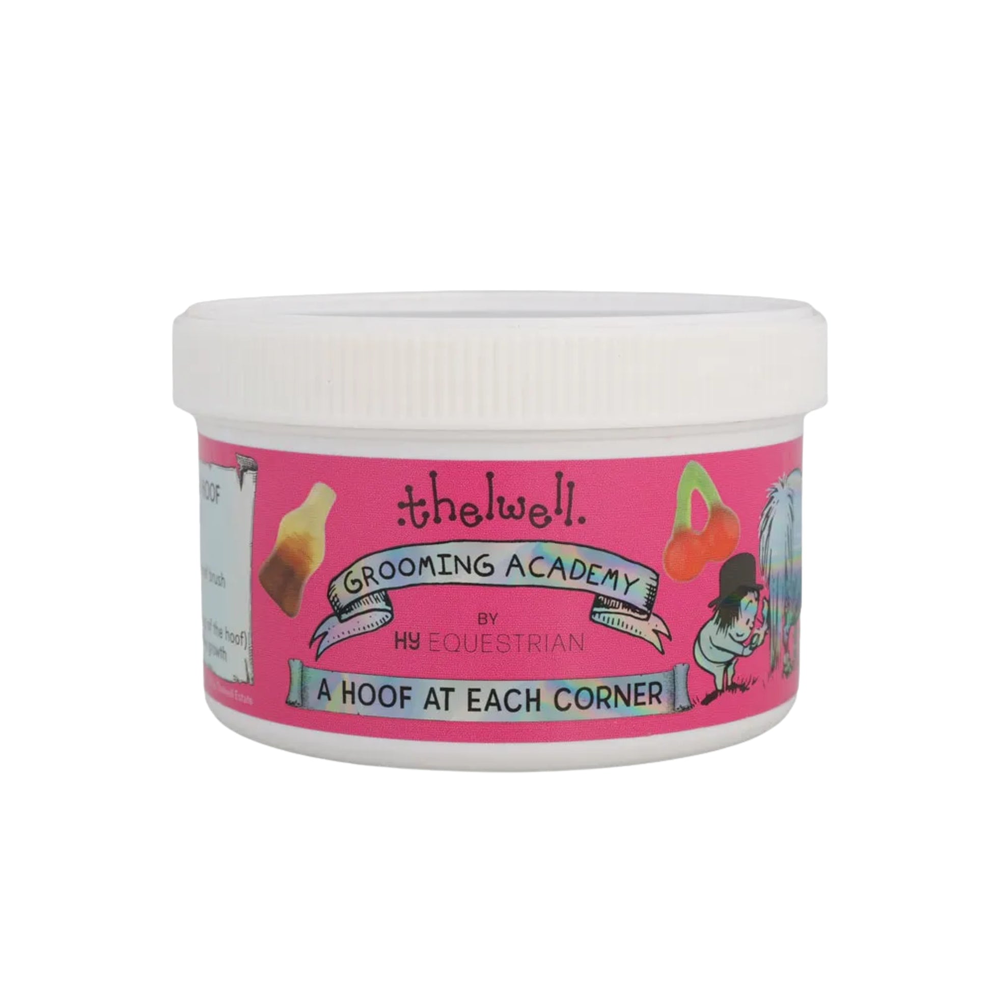 Keep your pony's hooves in peak condition with this premium conditioning ointment from the Thelwell Grooming Academy by Hy Equestrian. Formulated to maintain hoof health and strength throughout the year, it provides essential moisture during warmer months whilst offering robust protection against winter's wet and muddy conditions. The delightful cherry cola scent makes hoof care an enjoyable routine. Ideal for promoting strong, lustrous hooves that stay resilient in all seasons. Patch test before application.